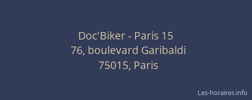Voici les horaires de Doc'Biker - 15 situé à Paris,