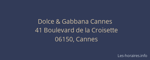 Voici les horaires de Dolce & Gabbana situé à Cannes,