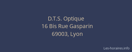 Voici les horaires de D.T.S. Optique situé à Lyon 3ème,