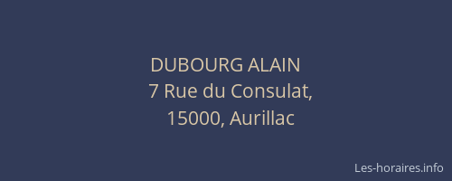 Voici les horaires de DUBOURG ALAIN situé à Aurillac,