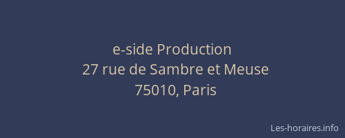 Voici les horaires de e-side Production situé à Paris 10ème,