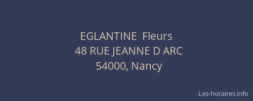 Voici les horaires de EGLANTINE Fleurs situé à Nancy,