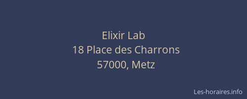Vous pouvez renseigner les horaires Elixir Lab situé à Metz,
