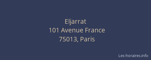 Voici les horaires de Eljarrat situé à Paris 13ème,