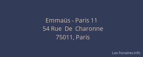 Voici les horaires de Emmaüs - 11 situé à Paris,