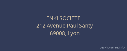 Vous pouvez renseigner les horaires ENKI SOCIETE situé à Lyon 8ème,