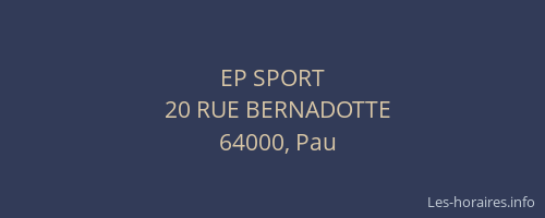 Vous pouvez renseigner les horaires EP SPORT situé à Pau,