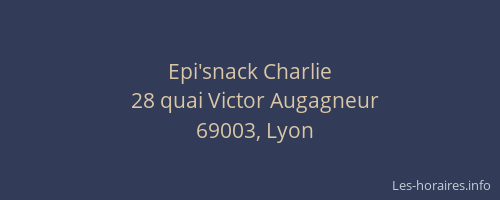 Vous pouvez renseigner les horaires Epi'snack Charlie situé à Lyon 3ème,
