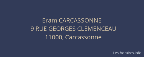 Voici les horaires de Eram CARCASSONNE situé à Carcassonne,