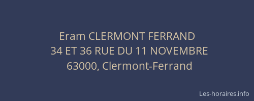 Voici les horaires de Eram CLERMONT FERRAND situé à Clermont-Ferrand,