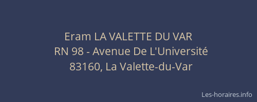 Voici les horaires de Eram LA VALETTE DU VAR situé à La Valette-du-Var,