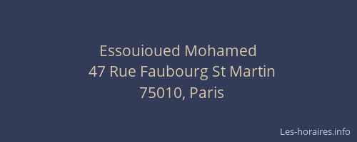 Voici les horaires de Essouioued Mohamed situé à Paris 10ème,