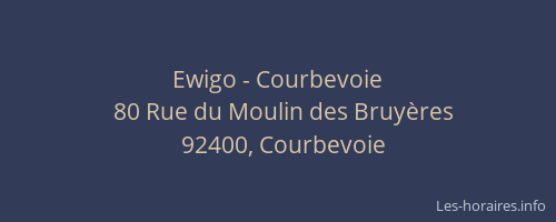 Vous pouvez renseigner les horaires Ewigo - situé à Courbevoie,