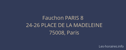 Voici les horaires de Fauchon PARIS 8 situé à Paris,