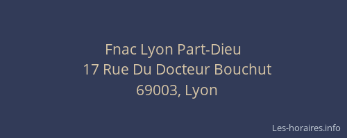 Voici les horaires de Fnac Part-Dieu situé à Lyon,