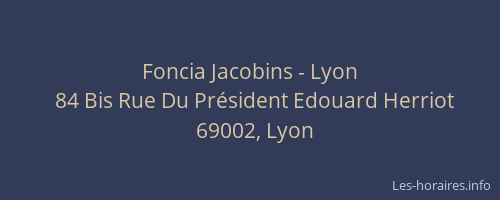 Voici les horaires de Foncia Jacobins - situé à Lyon 2ème,