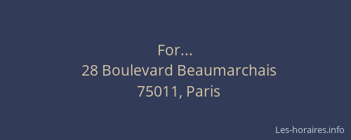 Voici les horaires de For... situé à Paris 11ème,