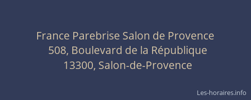 Voici les horaires de France Parebrise Salon de Provence situé à Salon-de-Provence,