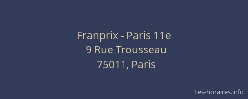 Voici les horaires de Franprix - 11e situé à Paris,