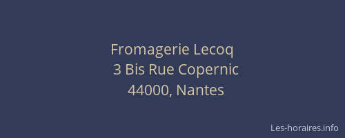 Voici les horaires de Fromagerie Lecoq situé à Nantes,