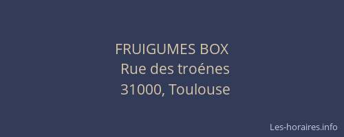 Voici les horaires de FRUIGUMES BOX situé à Toulouse,