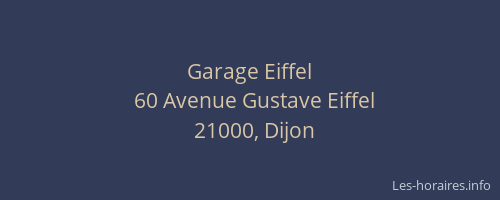 Voici les horaires de Garage Eiffel situé à Dijon,