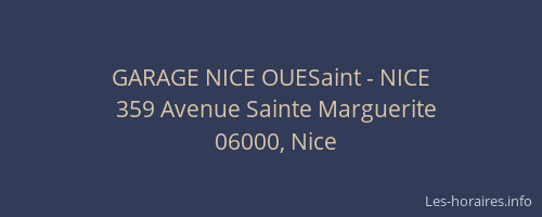 Voici les horaires de GARAGE NICE OUESaint - NICE situé à Nice,