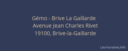 Voici les horaires de Gémo - Brive La Gaillarde situé à Brive-la-Gaillarde,