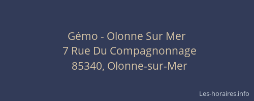 Voici les horaires de Gémo - Olonne Sur Mer situé à Olonne-sur-Mer,