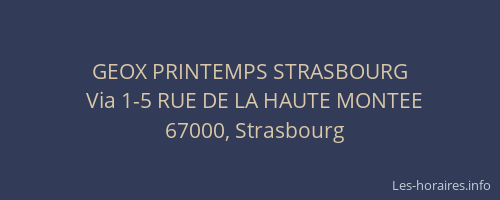 Voici les horaires de GEOX PRINTEMPS STRASBOURG situé à Strasbourg,