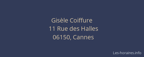 Voici les horaires de Gisèle Coiffure situé à Cannes,