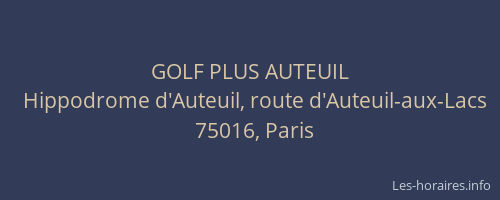 Voici les horaires de GOLF PLUS AUTEUIL situé à Paris 16ème,