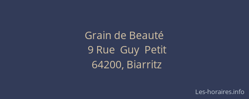 Voici les horaires de Grain de Beauté situé à Biarritz,