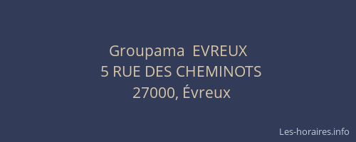 Voici les horaires de Groupama EVREUX situé à Évreux,