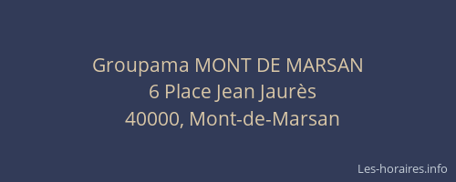 Voici les horaires de Groupama MONT DE MARSAN situé à Mont-de-Marsan,