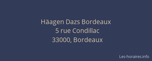 Voici les horaires de Häagen Dazs situé à Bordeaux,
