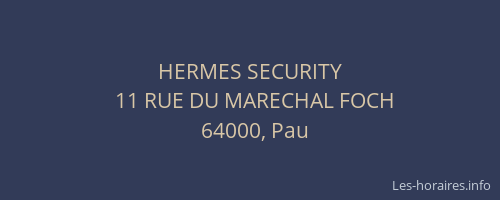 Vous pouvez renseigner les horaires HERMES SECURITY situé à Pau,