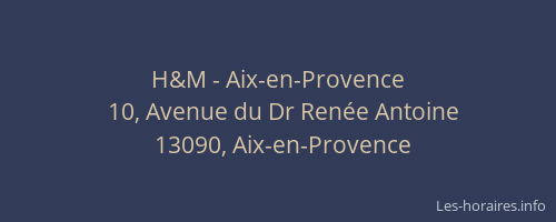 Voici les horaires de H&M - situé à Aix-en-Provence,