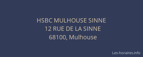 Voici les horaires de HSBC MULHOUSE SINNE situé à Mulhouse,