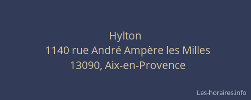 Vous pouvez renseigner les horaires Hylton situé à Aix-en-Provence,