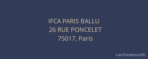Voici les horaires de IFCA PARIS BALLU situé à Paris,