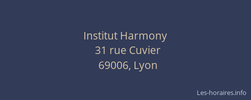 Voici les horaires de Institut Harmony situé à Lyon 6ème,