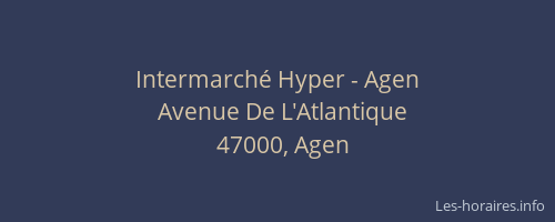 Voici les horaires de Intermarché Hyper - situé à Agen,