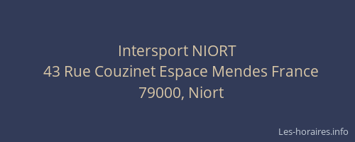 Voici les horaires de Intersport NIORT situé à Niort,