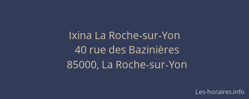 Voici les horaires de Ixina situé à La Roche-sur-Yon,
