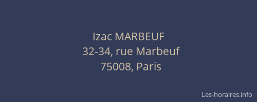 Voici les horaires de Izac MARBEUF situé à Paris 8ème,