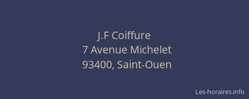 Voici les horaires de J.F Coiffure situé à Saint-Ouen,