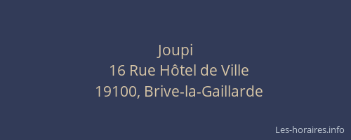 Voici les horaires de Joupi situé à Brive-la-Gaillarde,