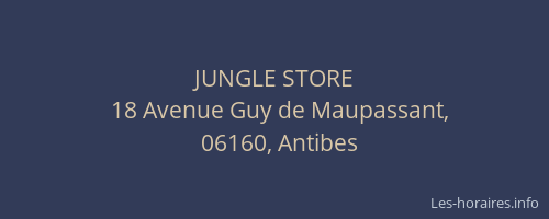 Voici les horaires de JUNGLE STORE situé à Antibes,