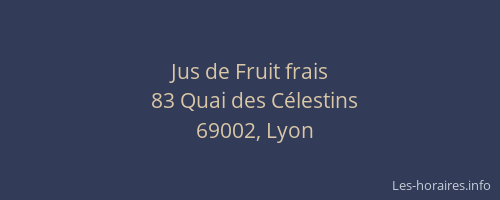 Voici les horaires de Jus de Fruit frais situé à Lyon 2ème,